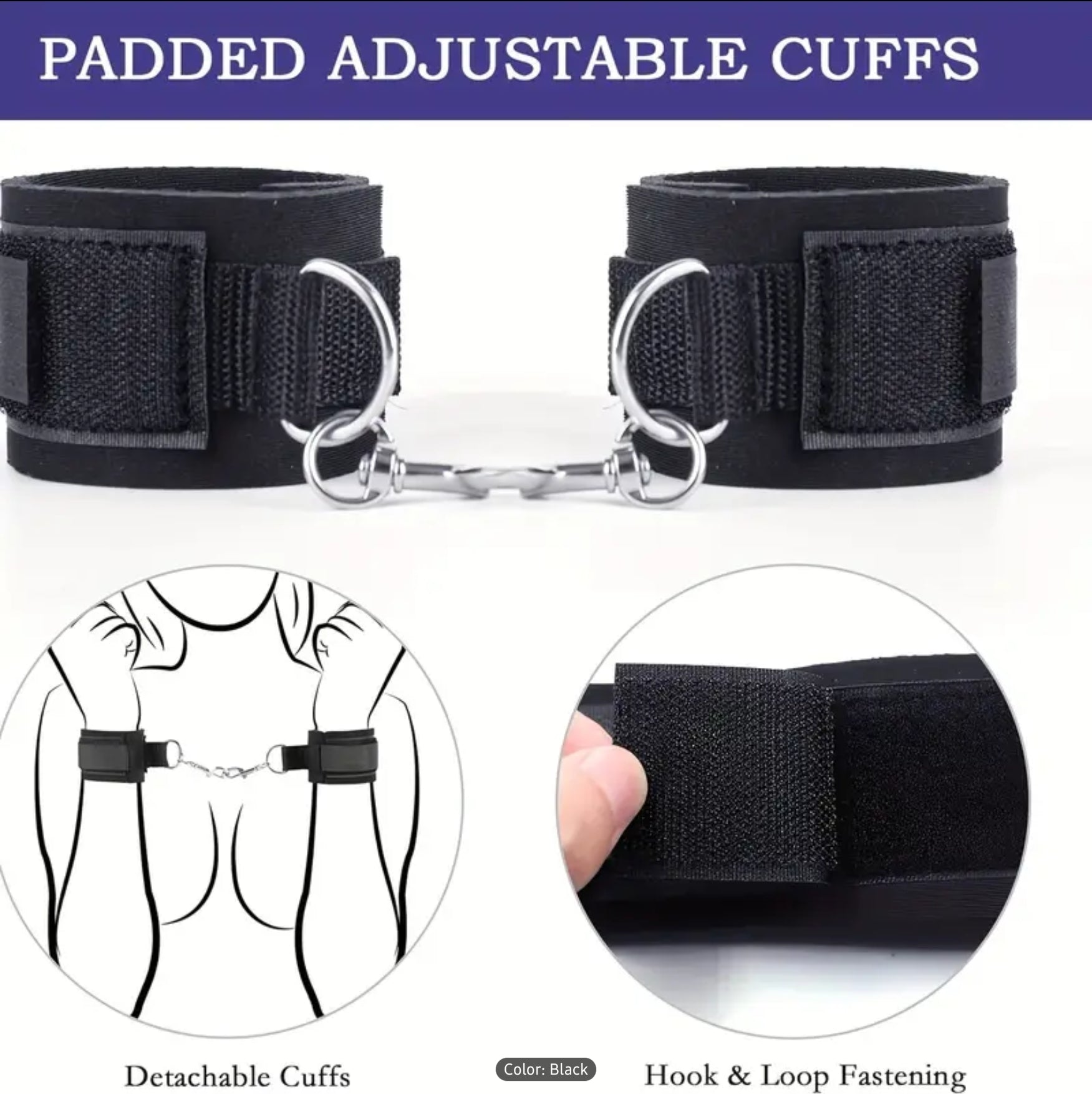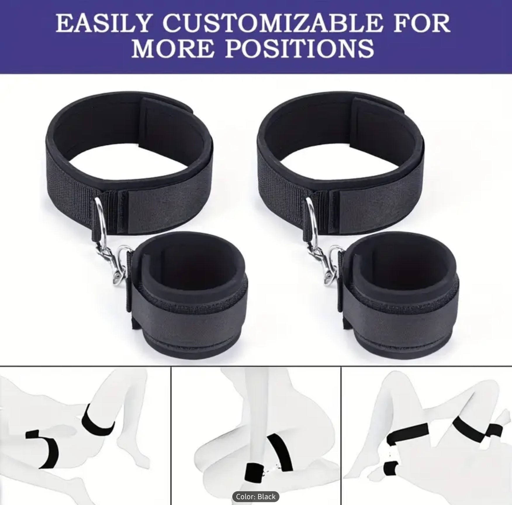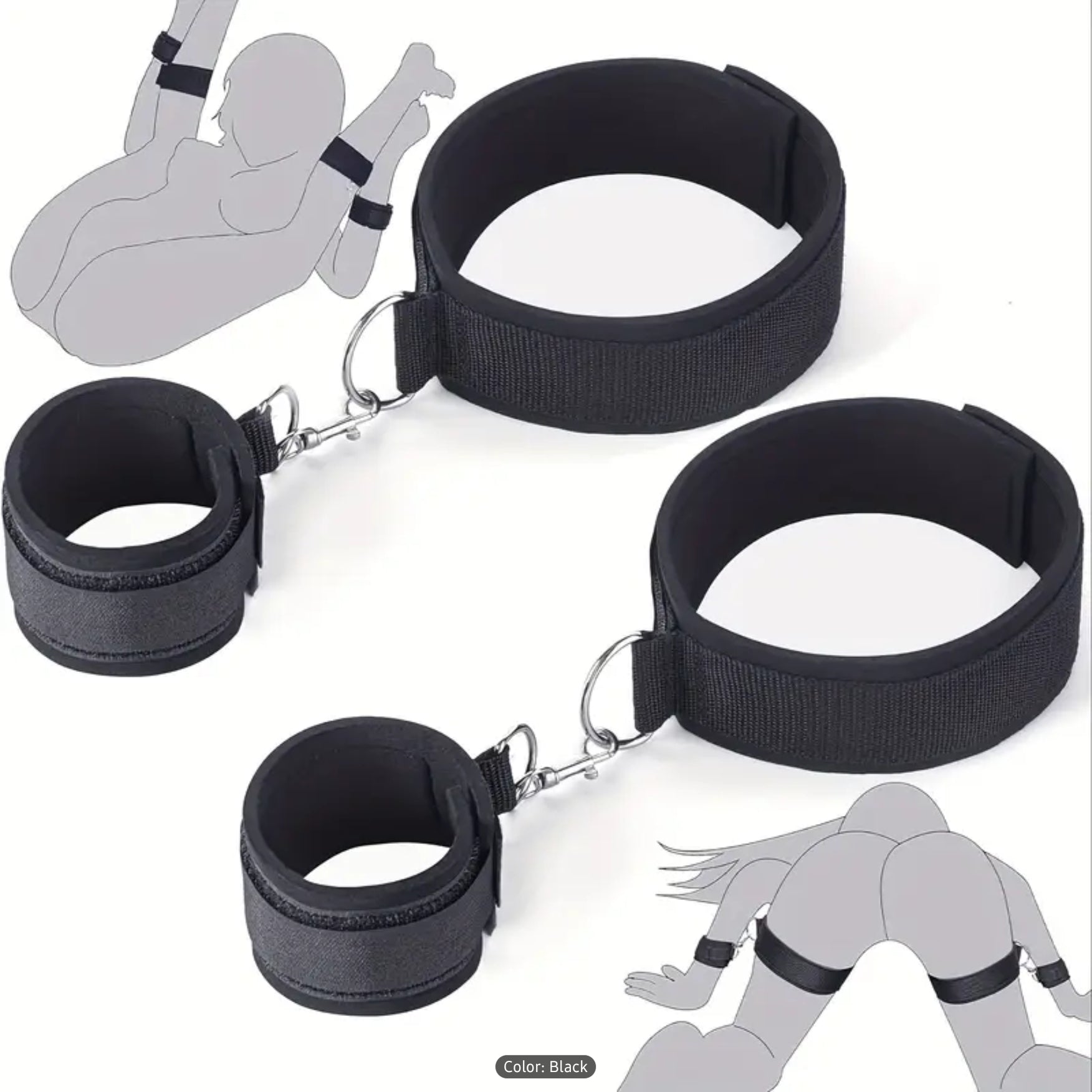 Lust 2pcs BDSM Adjustable Handcuffs and Thigh Bondage Straps, Soft Padding, Sturdy Metal Buckle, Detachable Loop Fastening, Comfortable Restraint Set for Couples