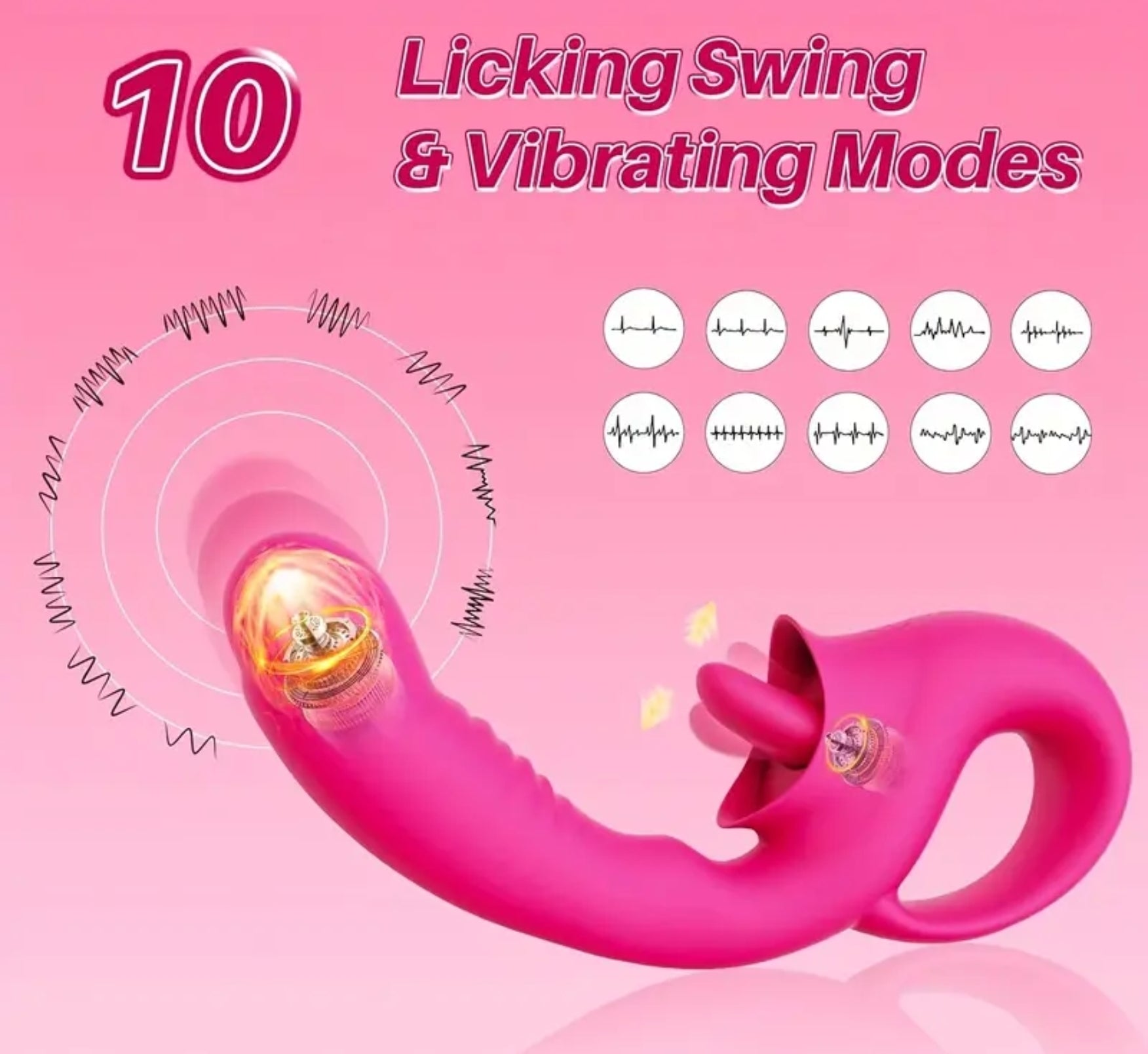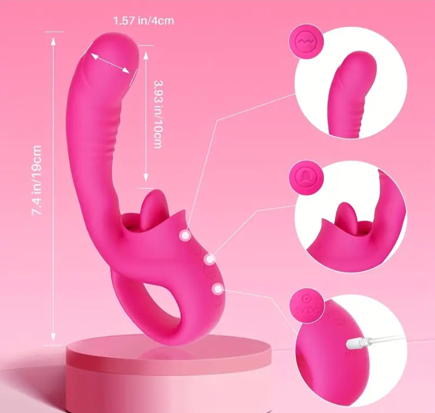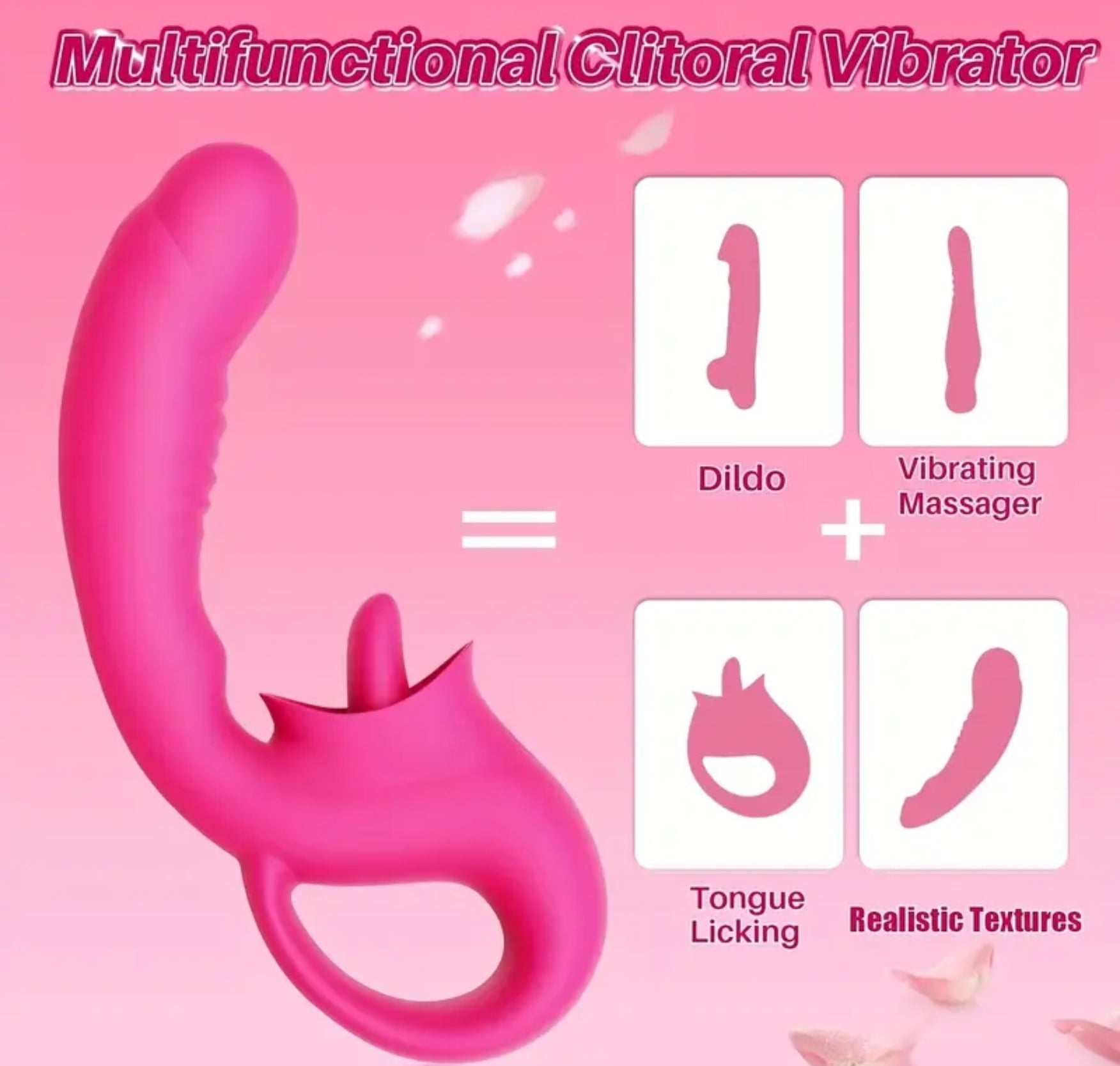2in 1 Tongue Licking Vibrator Dildo with 10 ClitoralLicking And 10 Vibration Modes, G-spot Stimulator, Pleasure Tool for Female Couple